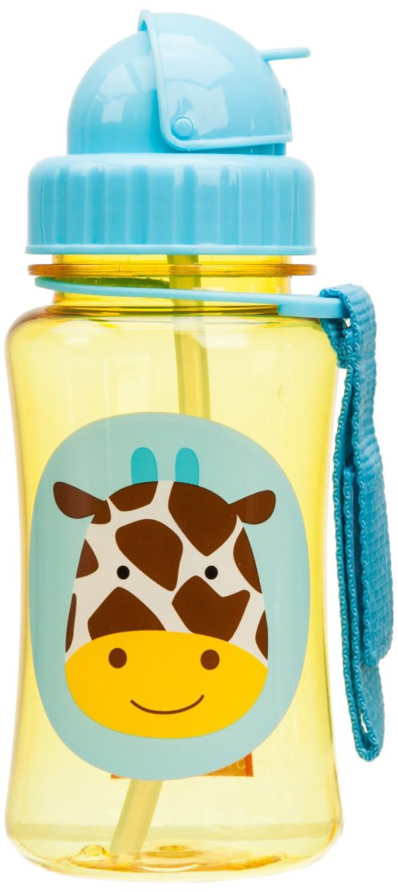 Zoo Straw Bottle flip-straw sports bottle - Sip your favorite drink with your Zoo friend! A major milestone for toddler is when she is ready to move on from sippy cups. The ZOO Straw Bottle helps ease this transition by giving little ones a "big-kid cup" with the protection of a flip-top lid. Dishwasher-safe; also comes with an extra straw. Features: Recommended ages - 12m+; signature Skip Hop Zoo characters; straw flips down to seal closed and stay clean; handy Velcro grab-strap attaches to anything; holds 12 oz.